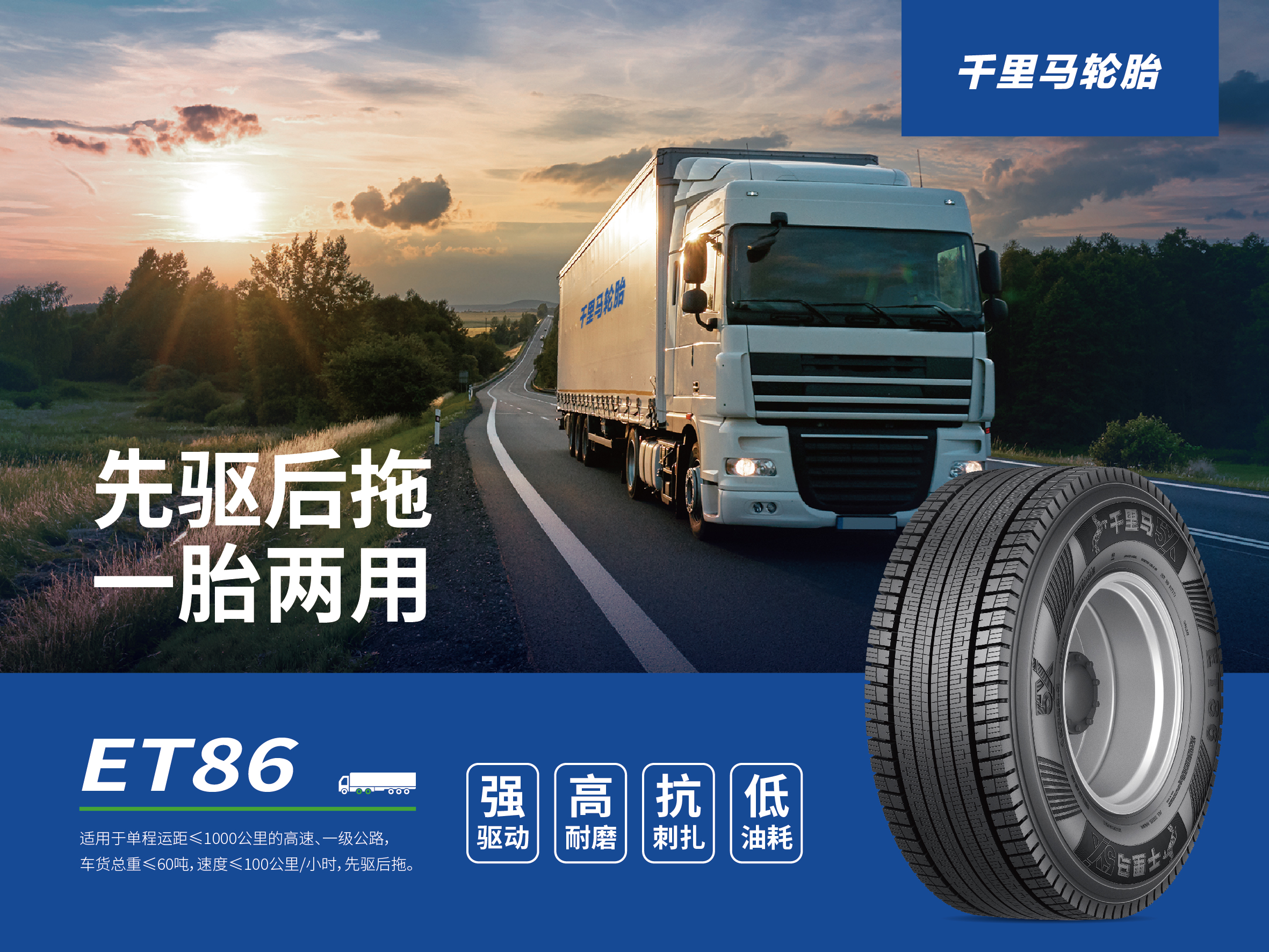 近年來,隨著新能源商用車市場的快速發展和輪胎需求的不斷升級,千里馬ET86應運而生。